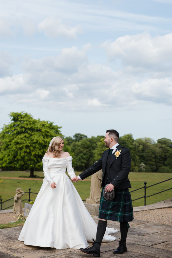 Alex and Maria’s wedding at Lartington Hall was the perfect blend of timeless elegance and heartfelt celebration. With a Scottish groom and English bride, the day beautifully honoured both backgrounds, unfolding like a modern fairy tale.