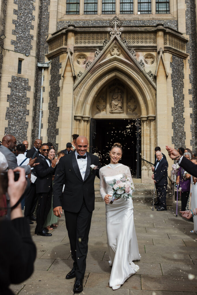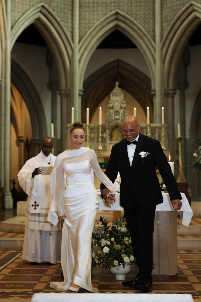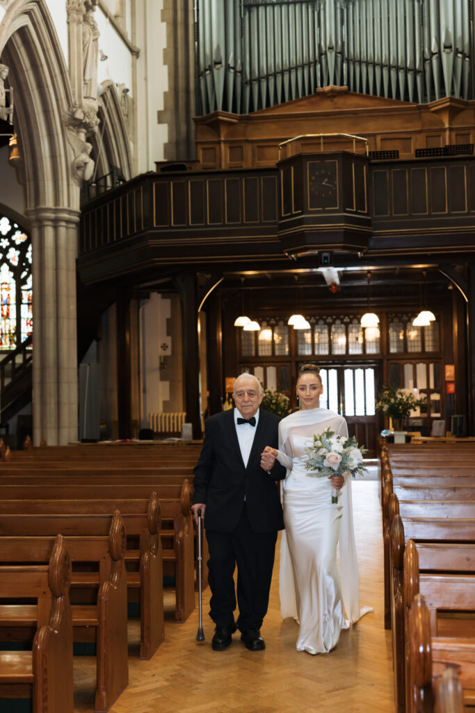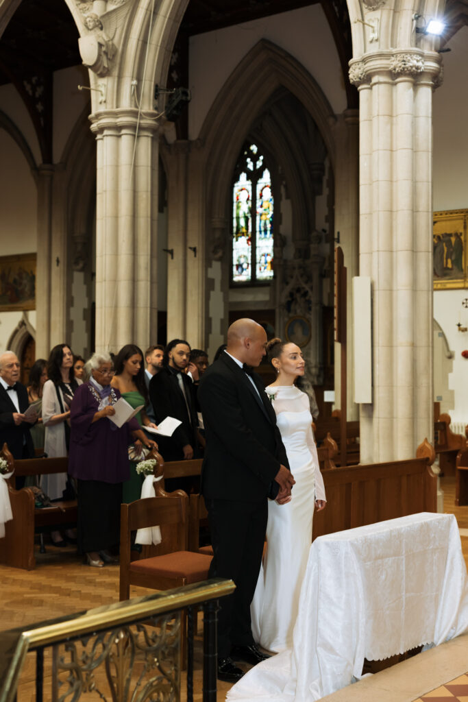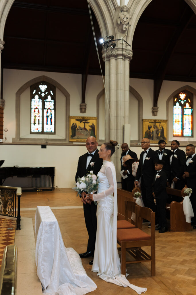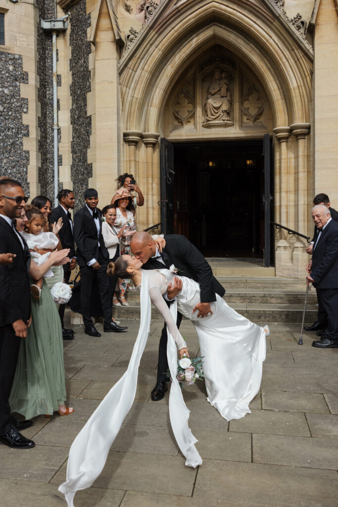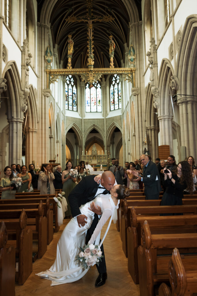 Where do I even begin with Simone & Leon’s August wedding in London? It was the most London day—soft rain, bright sun, and a comedy interlude when a Rolls-Royce had to reverse between the church and hotel—yet the vibe stayed pure joy: big laughs, big love, relentless energy. Simone wore a custom gown that moved like a dream, teamed with luminous, skin-first makeup; and of course Leon brought the effortless cool.