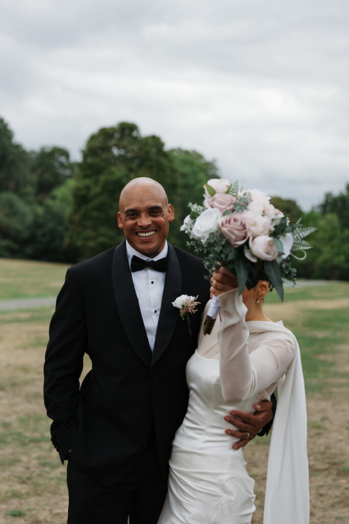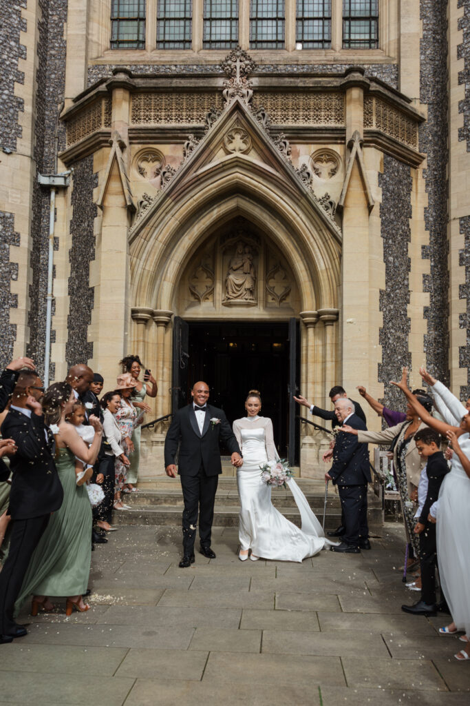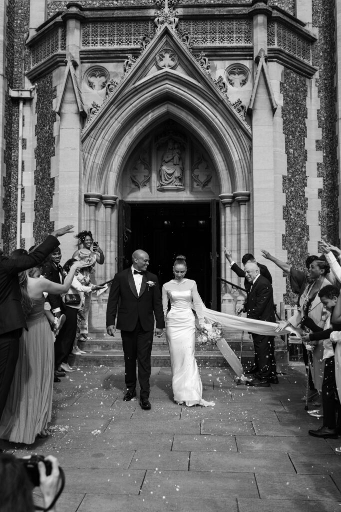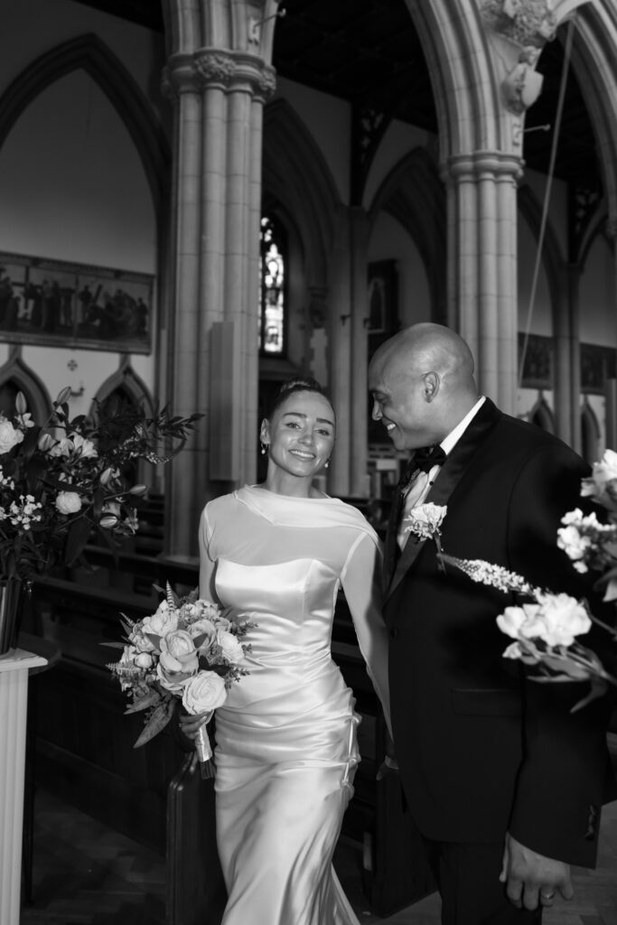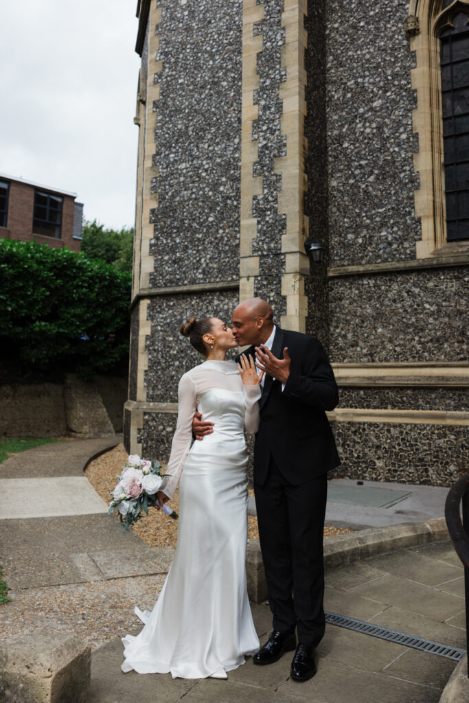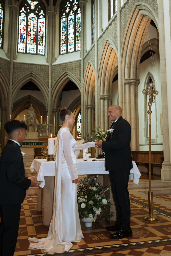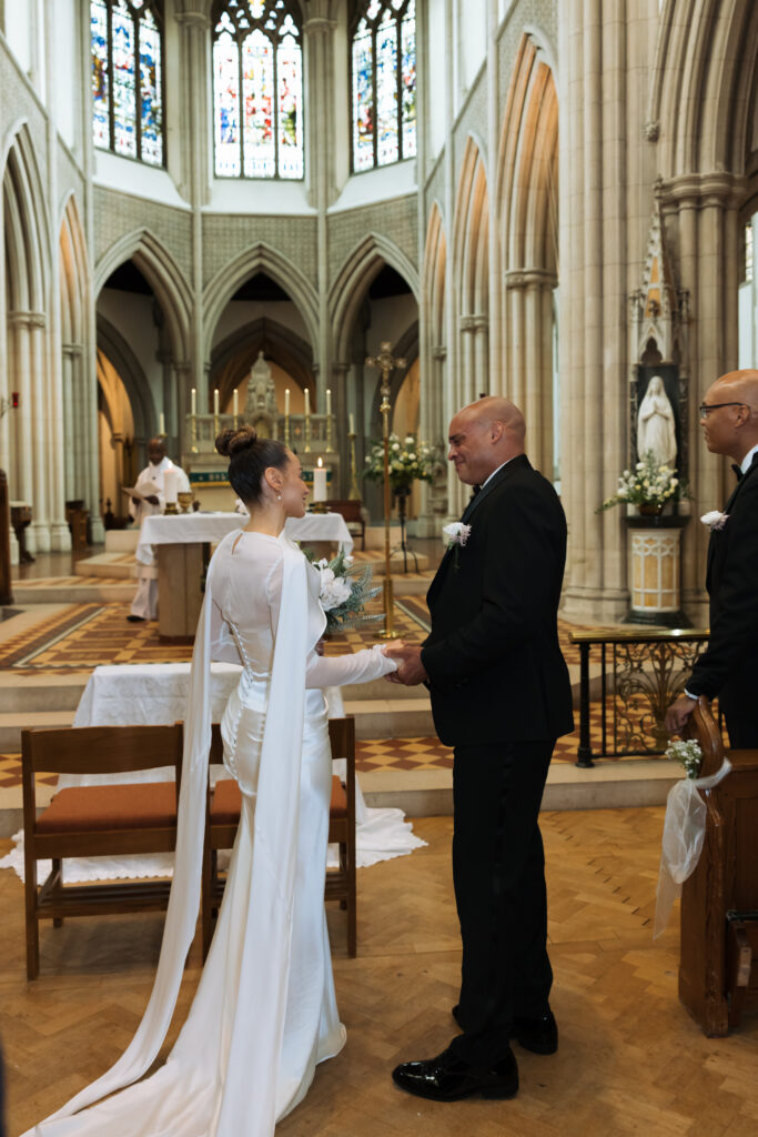 Where do I even begin with Simone & Leon’s August wedding in London? It was the most London day—soft rain, bright sun, and a comedy interlude when a Rolls-Royce had to reverse between the church and hotel—yet the vibe stayed pure joy: big laughs, big love, relentless energy. Simone wore a custom gown that moved like a dream, teamed with luminous, skin-first makeup; and of course Leon brought the effortless cool.