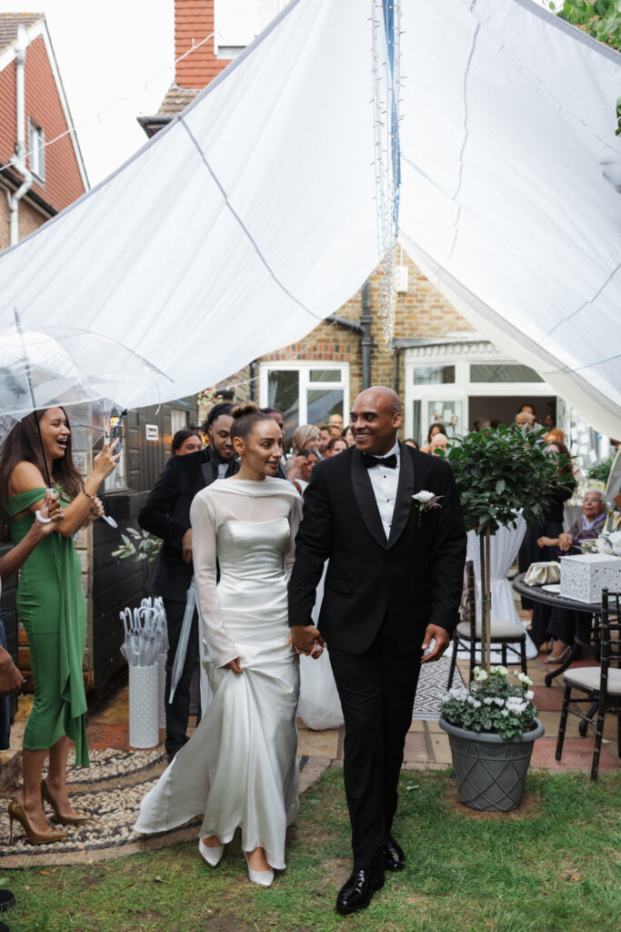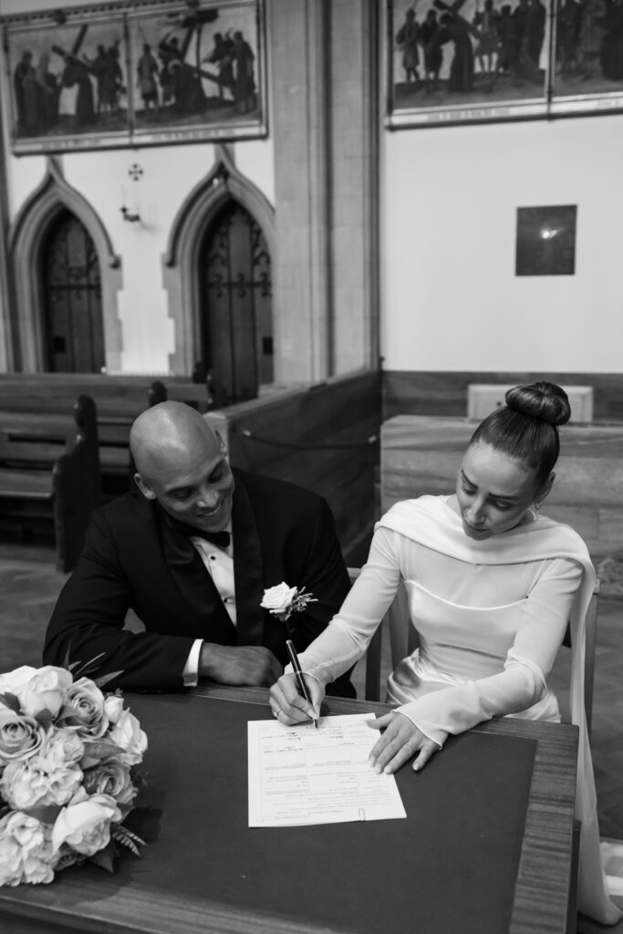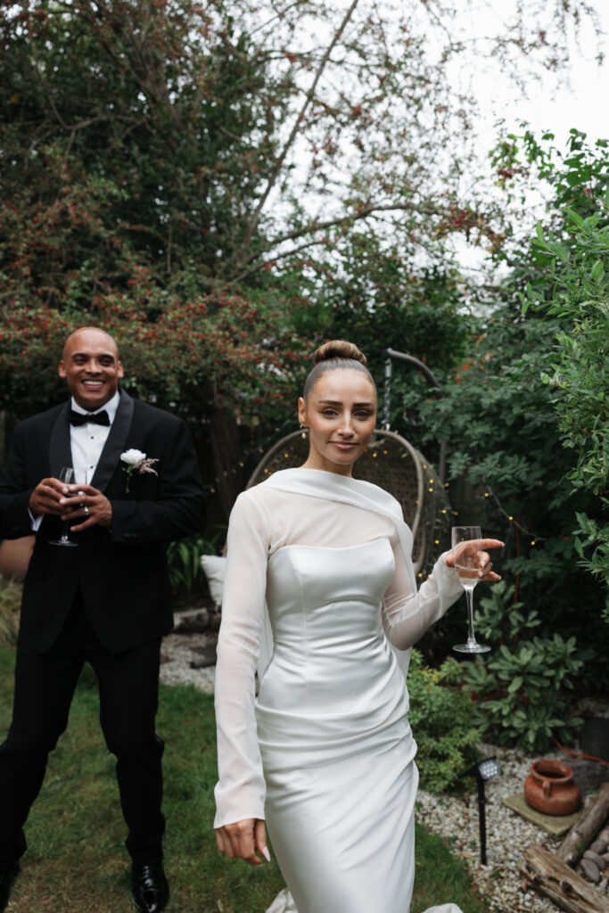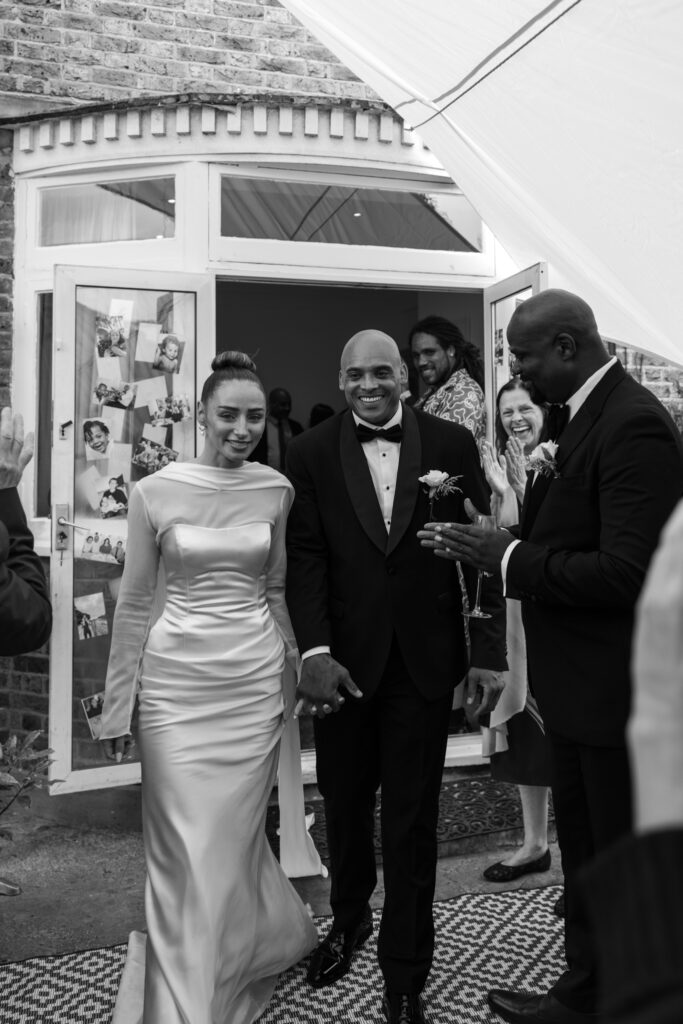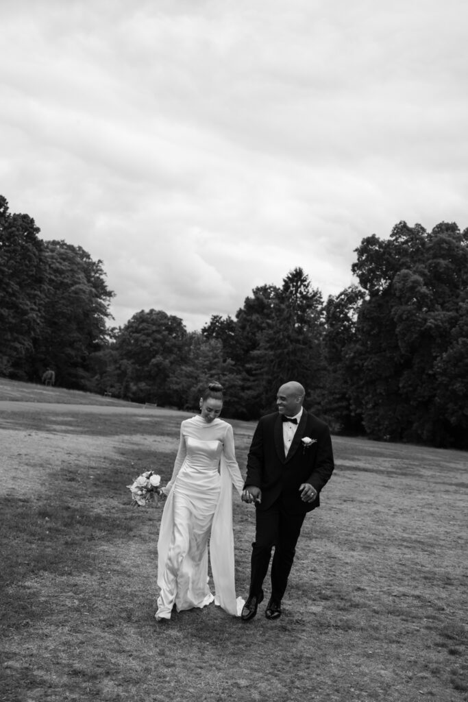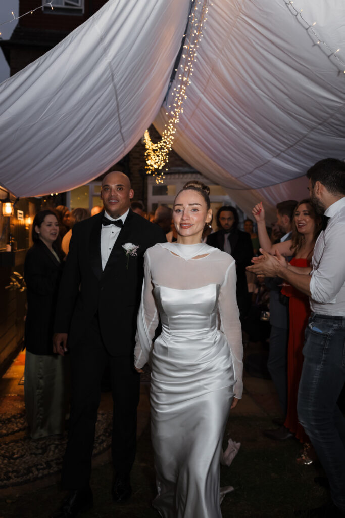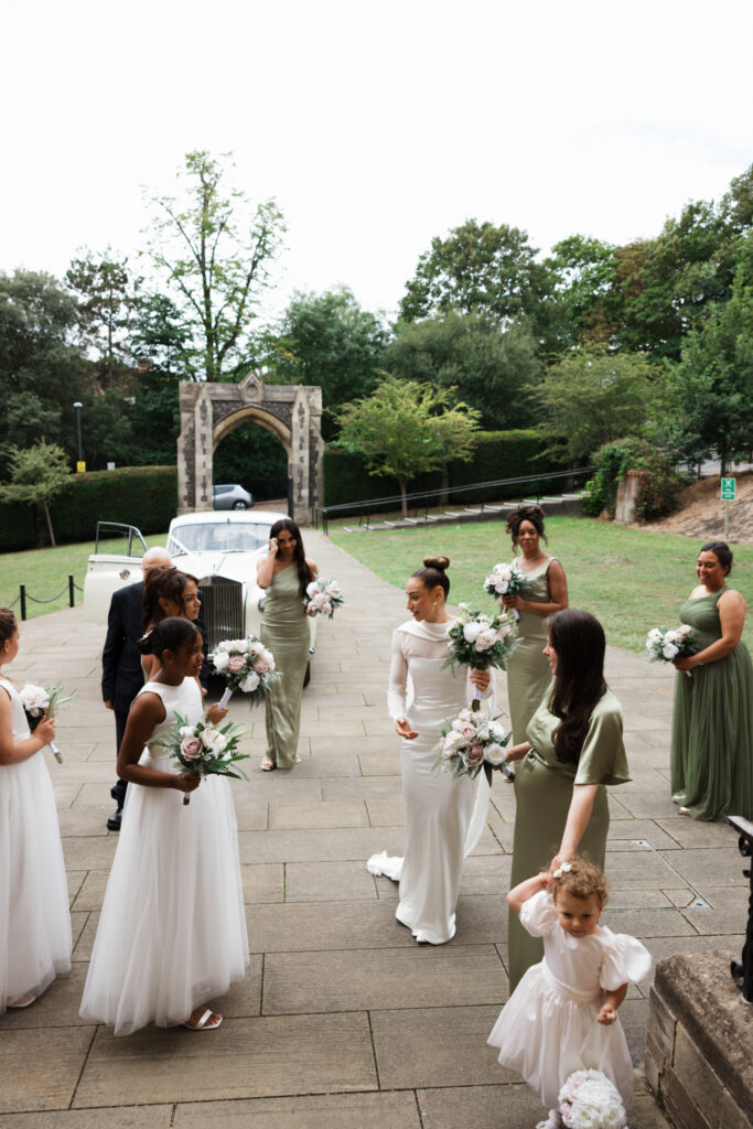 Where do I even begin with Simone & Leon’s August wedding in London? It was the most London day—soft rain, bright sun, and a comedy interlude when a Rolls-Royce had to reverse between the church and hotel—yet the vibe stayed pure joy: big laughs, big love, relentless energy. Simone wore a custom gown that moved like a dream, teamed with luminous, skin-first makeup; and of course Leon brought the effortless cool.
