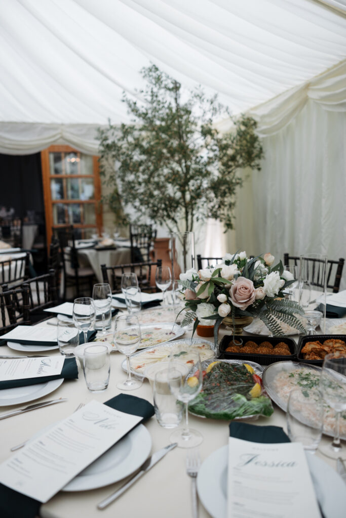 After the most emotional and beautiful church ceremony, guests headed to a private-estate marquee in the family garden (this house has hosted before and it shows!) where service flowed and the food was next-level.